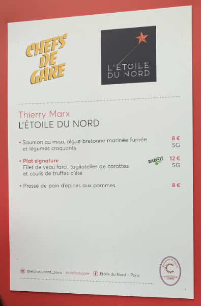 Un coup d'oeil au menu : truffe, caviar, ... la classe ! J'ai chargé ma carte avec 20€, ça me laisse tout juste de quoi prendre un plat et un dessert.